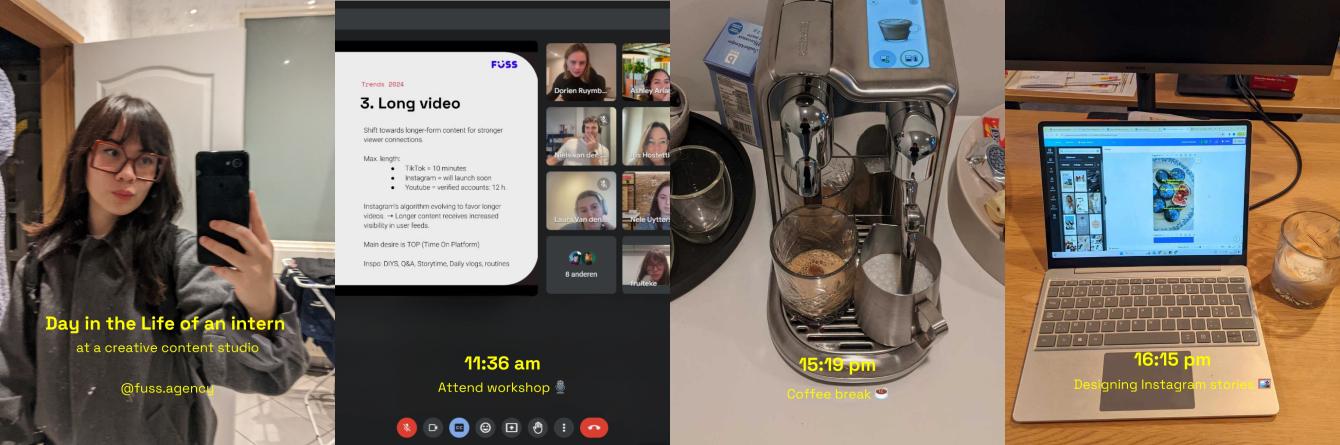 Je gaat aan de slag met het bedenken, creëren en (in)plannen van creatieve content voor zowel Fuss zelf als haar klanten.